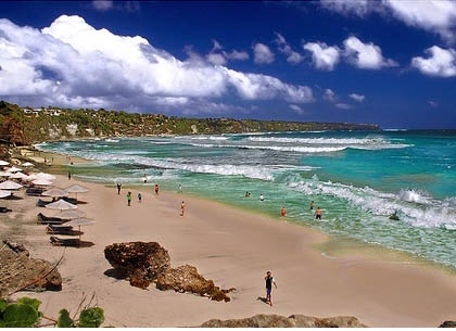 • Uluwatu, Pemandangan hamparan Samudera Hindia dari atas ketinggian tebing yang curam, terdapat pula sebuah pura yang didirikan diatas  tebing yang menjorok ke laut.